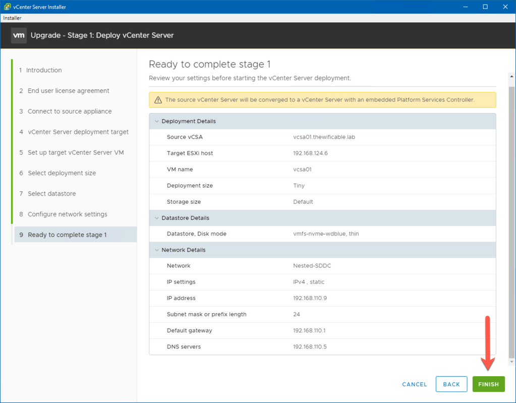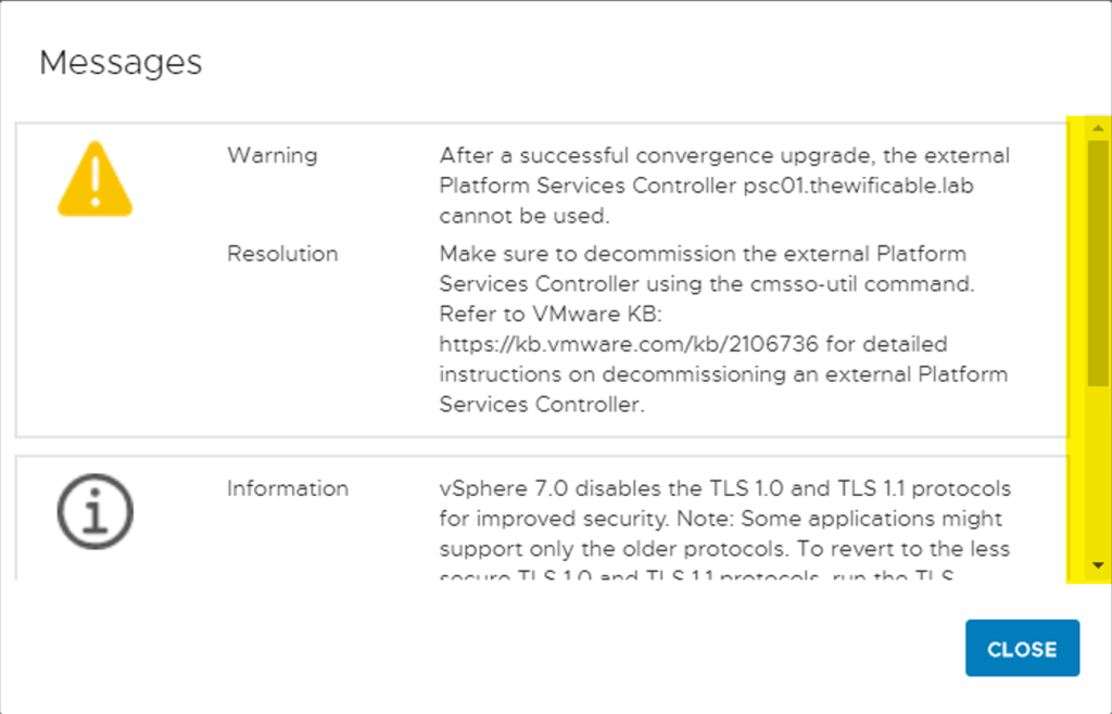 That is all there is to it for upgrading vCenter Server 6.5 topology with external PSC’s to vCenter Server 7.0 converged appliances with embedded PSC’s. Just remember to follow the directions in the documentation, run your backups, test the process in a test environment if possible and don’t skip any steps.