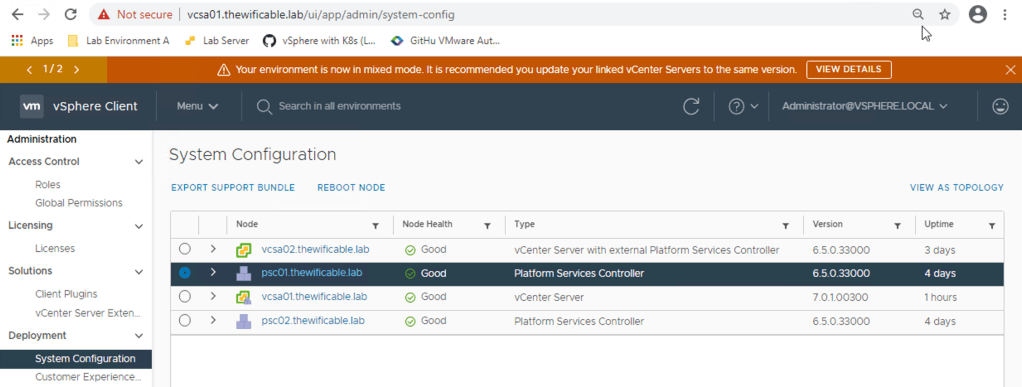 - Once VCSA01 and VCSA02 are upgraded to 7.0 we will then begin with the decommission process for the two 6.5 PSC’s.