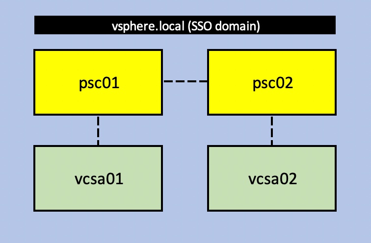 For my first blog post of 2021, I want to focus on an area that comes as a request from one of my blog followers. I have an existing article for upgrading vCenter Server 6.5 to 7.0 but that one is pretty simple and straightforward. The wrinkle that I am adding to this scenario involves the source vCenter 6.5 environment and topology to include an external PSC. Then to add an additional wrinkle, the source topology contains two (2) PSCs and two (2) vCenter Server appliances in a single SSO domain and single site (diagram below).